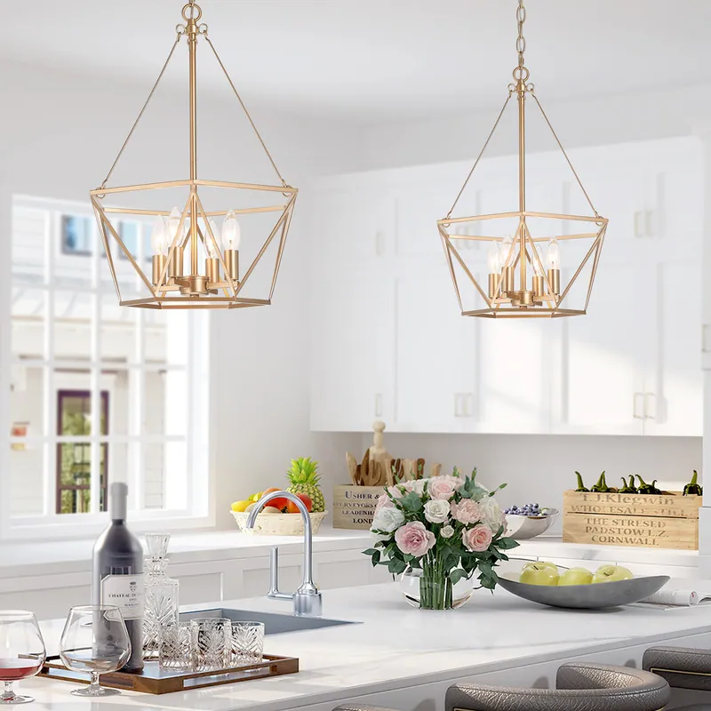 Zeci Modern Farmhouse 4-light Gold Lantern Chandelier Cage Ceiling Lights for Dining Room Foyer Entryway