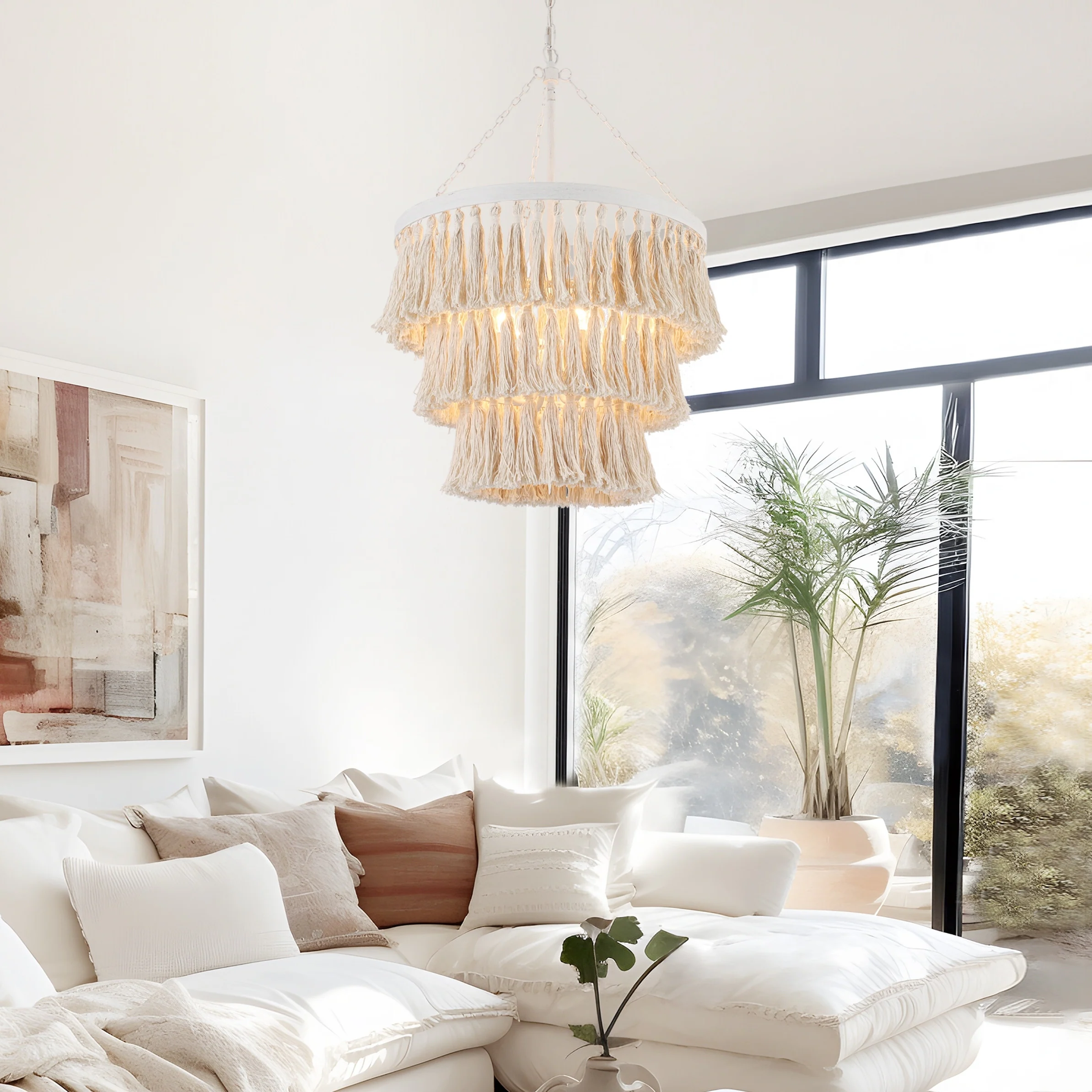 Stella Modern Farmhouse 4-Light 3-Tier Chandelier Boho Coastal Lights for Dining Room