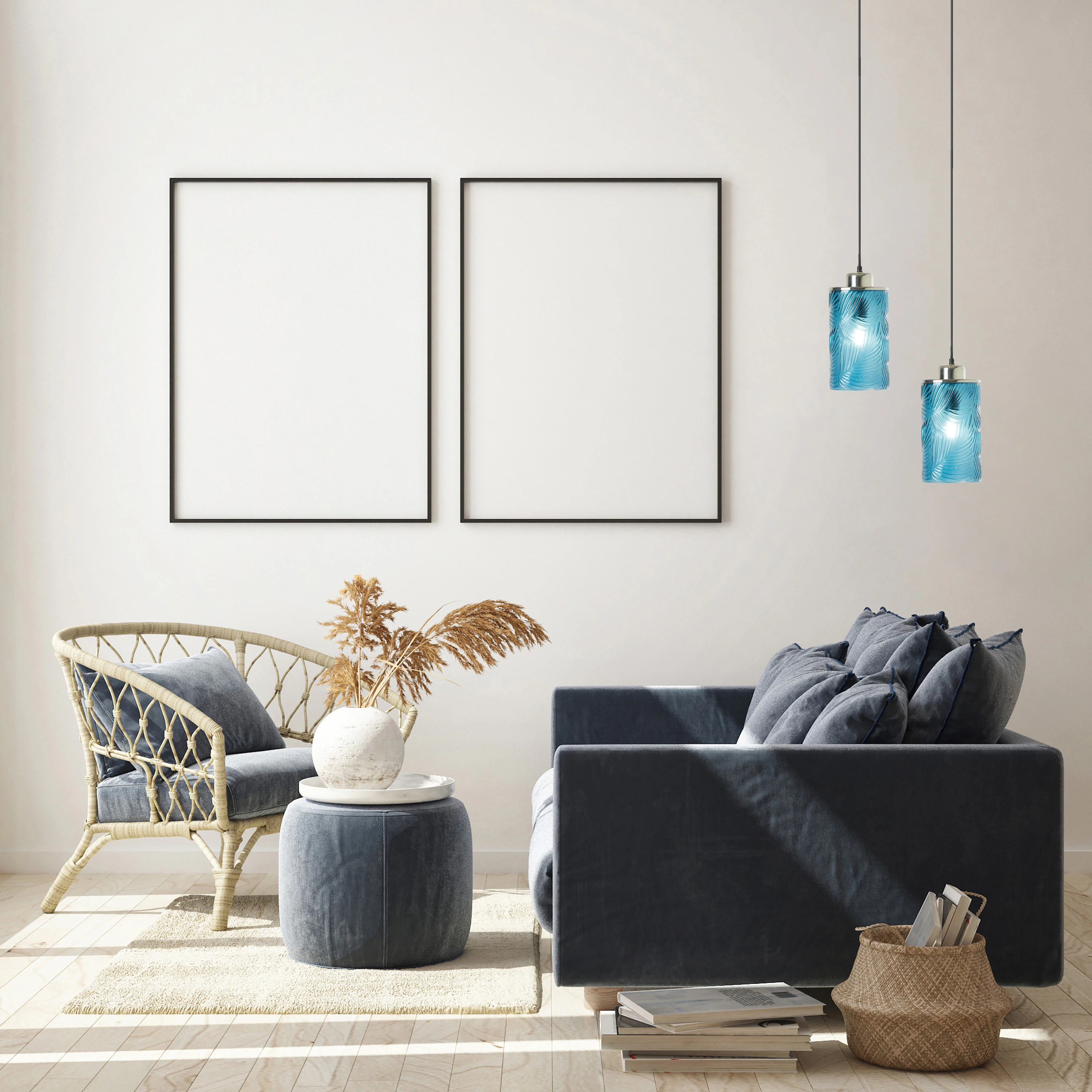 River of Goods Robbie 6-Inch Blue Palm Leaf Textured Glass Pendant Light