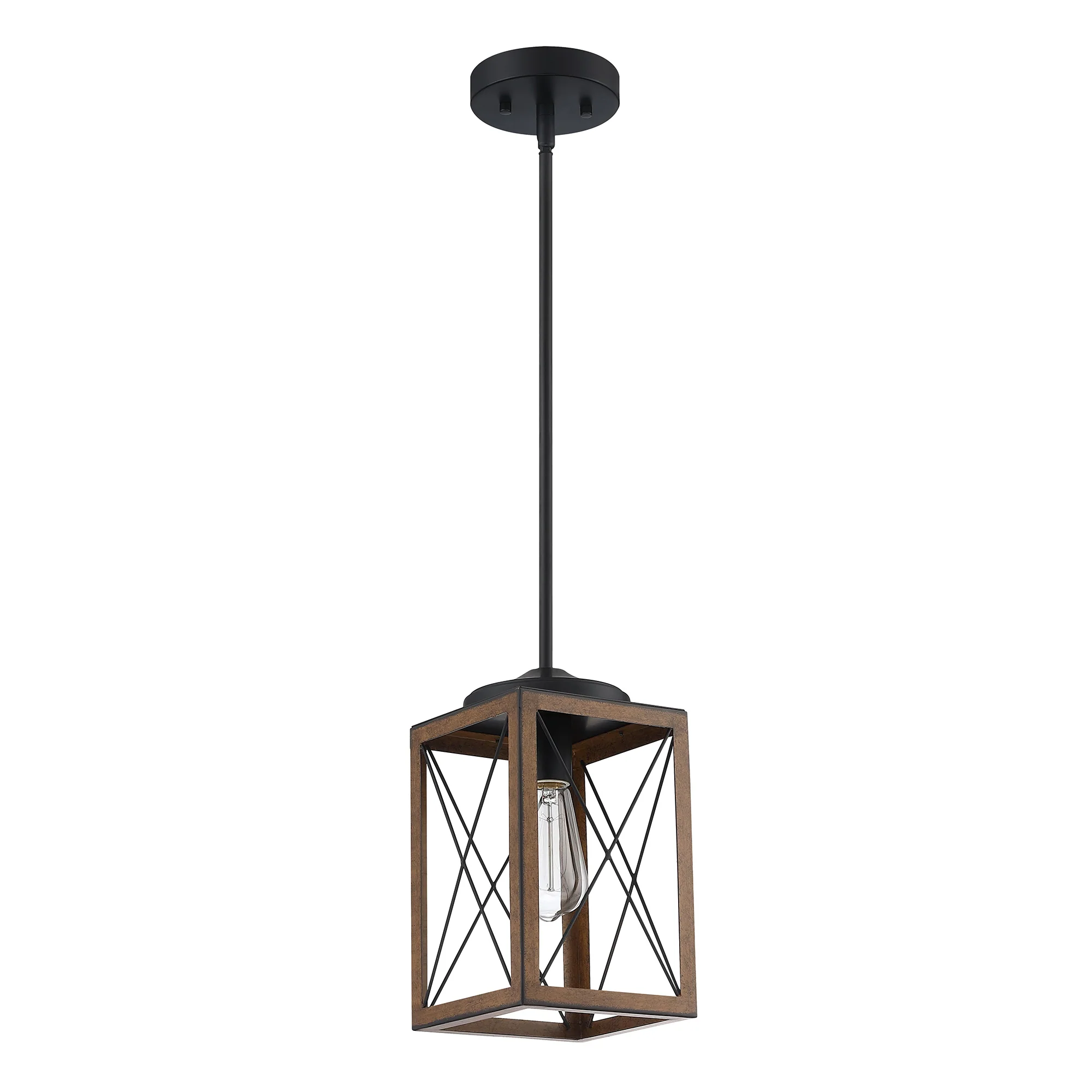 Black 1-Light Wooden Lantern Chandelier
