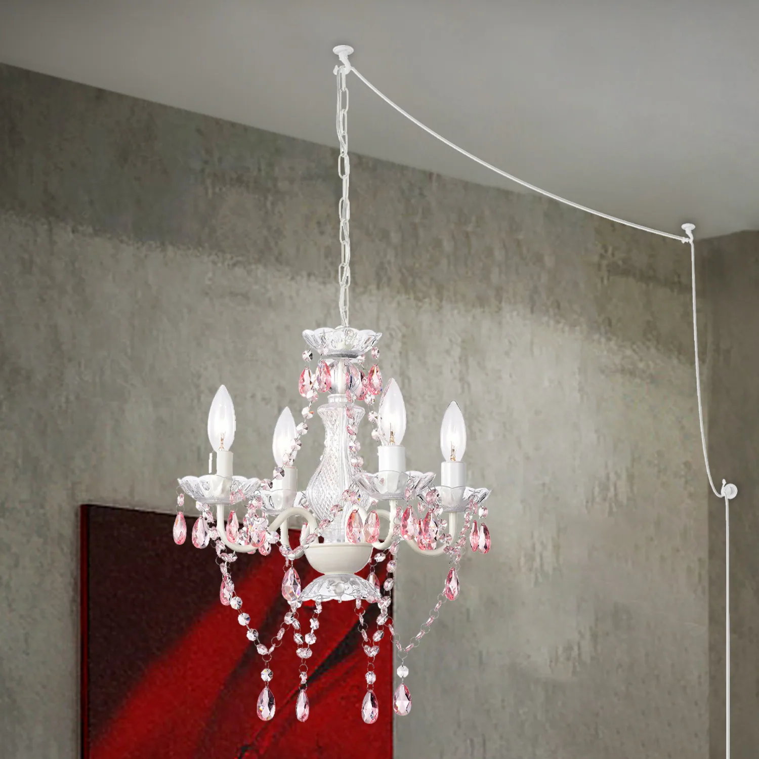 Plug In Chandelier Modern White and Pink Crystal Chandelier 4-Light