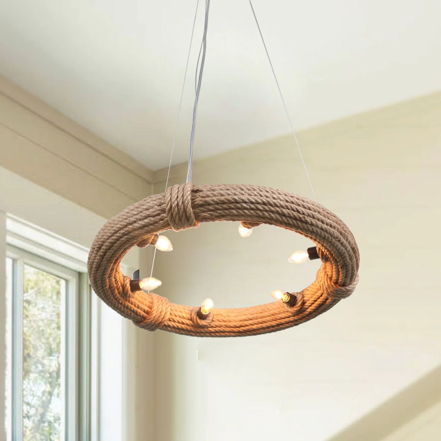 Farmhouse 6-Light Rope Wheel Pendant Light