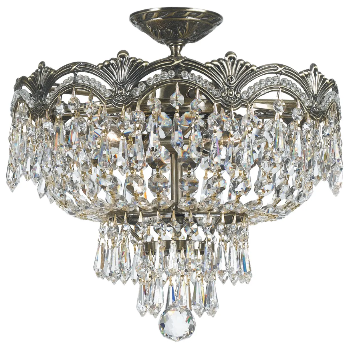 Majestic 3-light Historic Brass Italian Crystal Semi-flush Mount