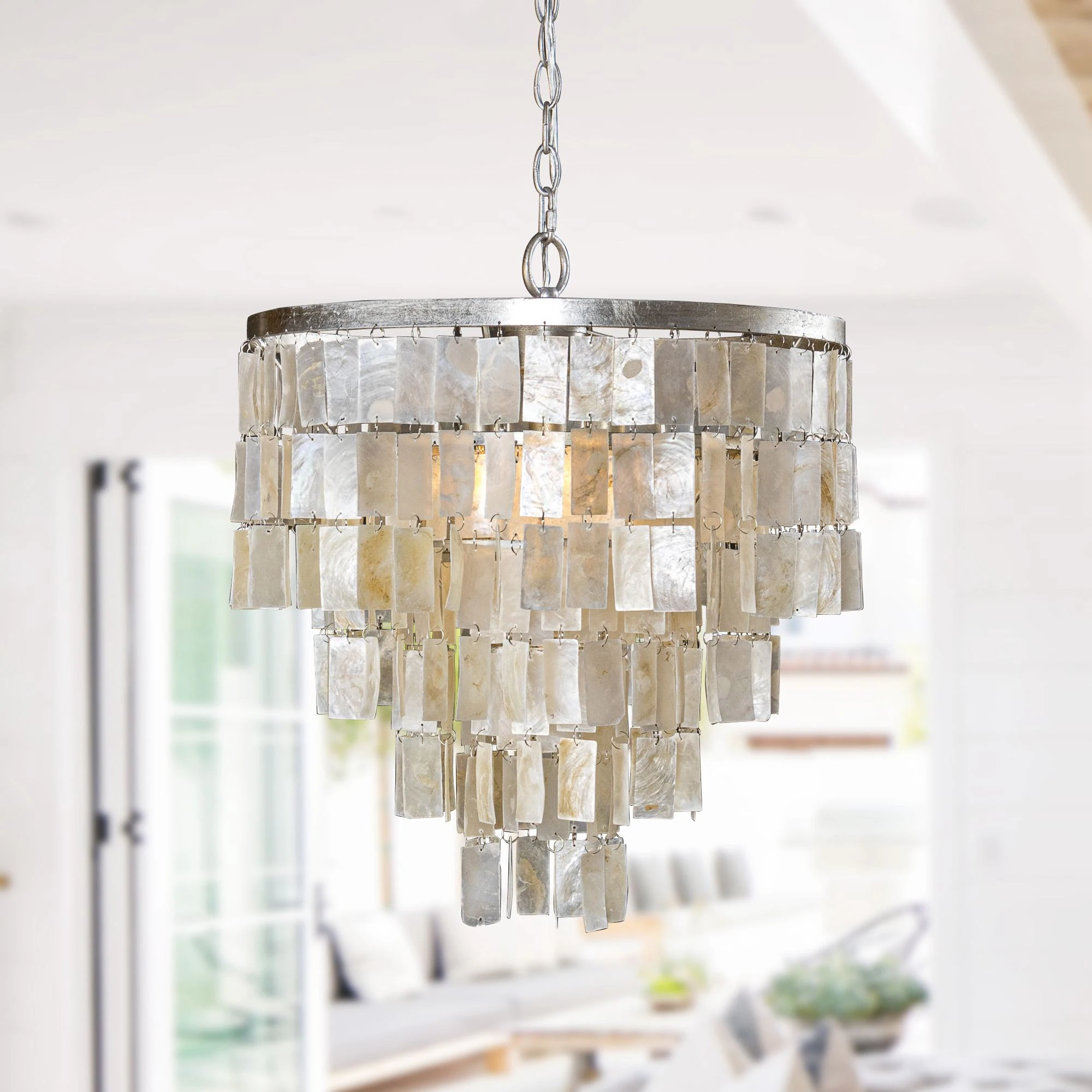 17.7-inch Coastal Silver 3-Light Tiered Shell Chandelier