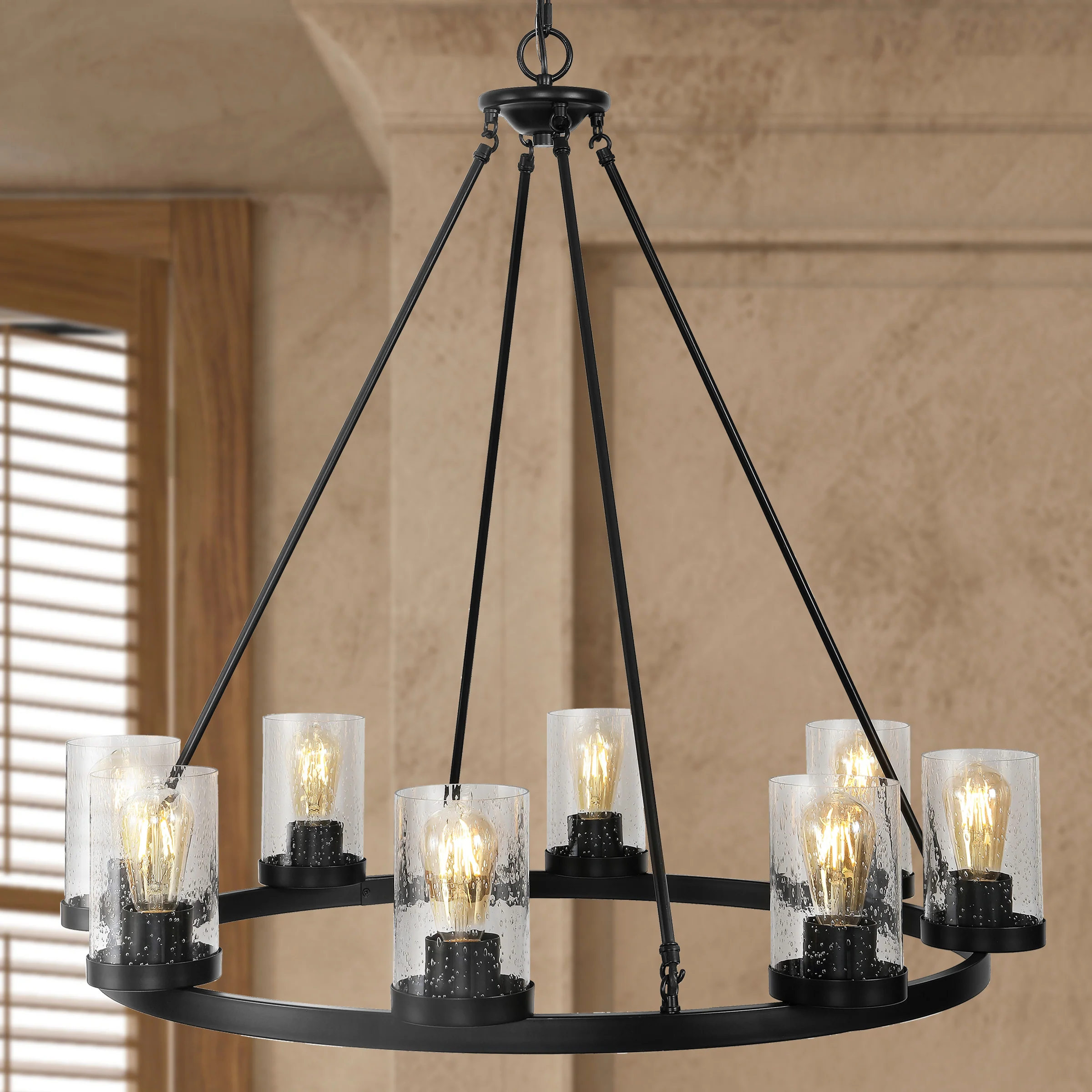 Athos Ring Iron/Seeded Glass Bohemian Cottae LED Chandelier, Oil Rubbed Bronze by JONATHAN Y