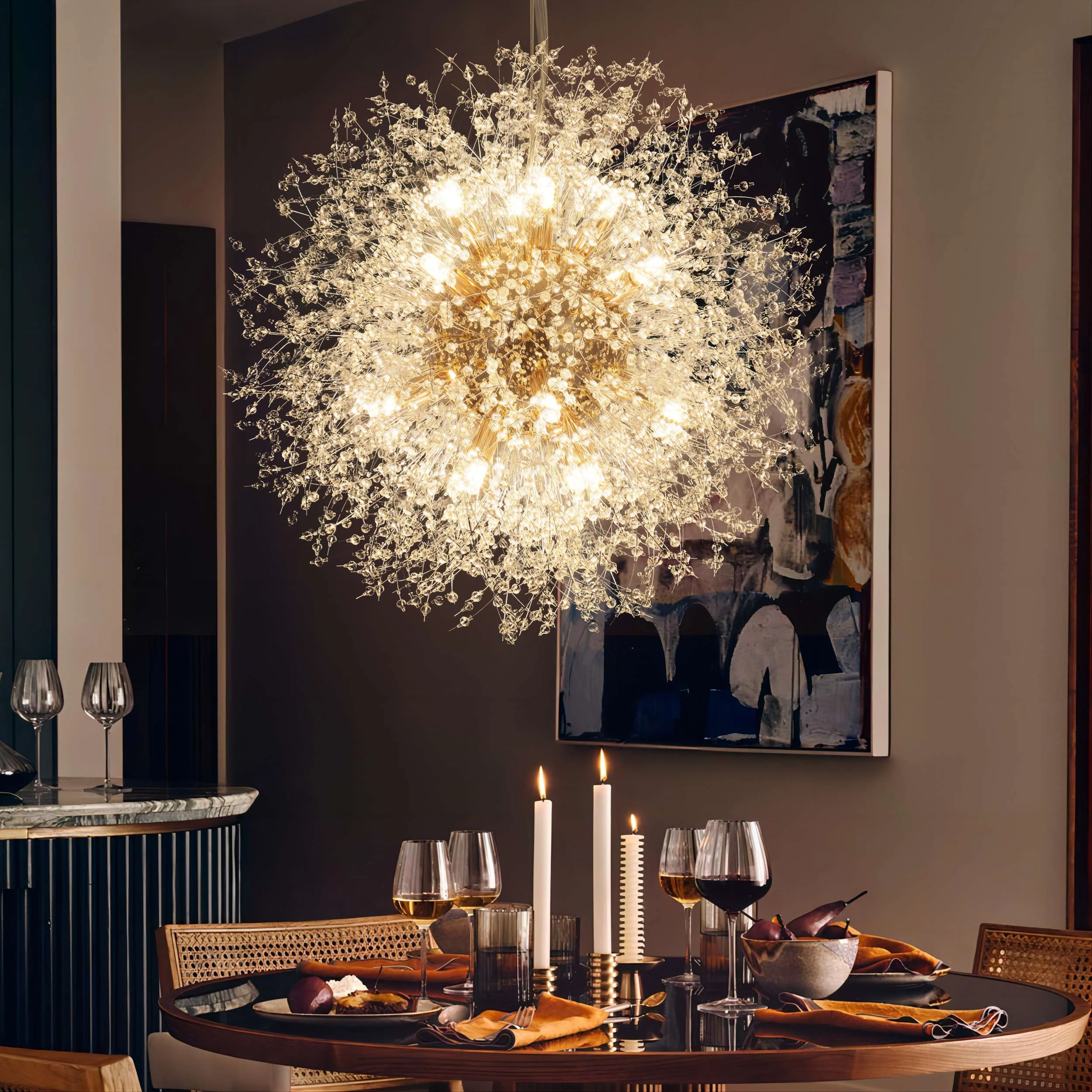 16-Light Modern Glam Sputnik Starburst Pendant Dandelion Firework Crystal Chandelier