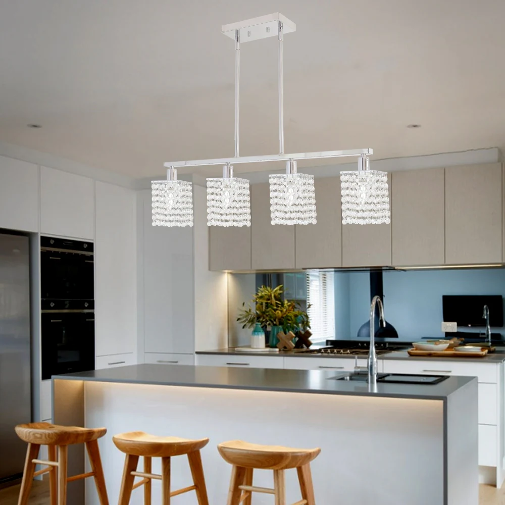 4 Lights Crystal Chandeliers Modern Pendant Lighting Fixtures