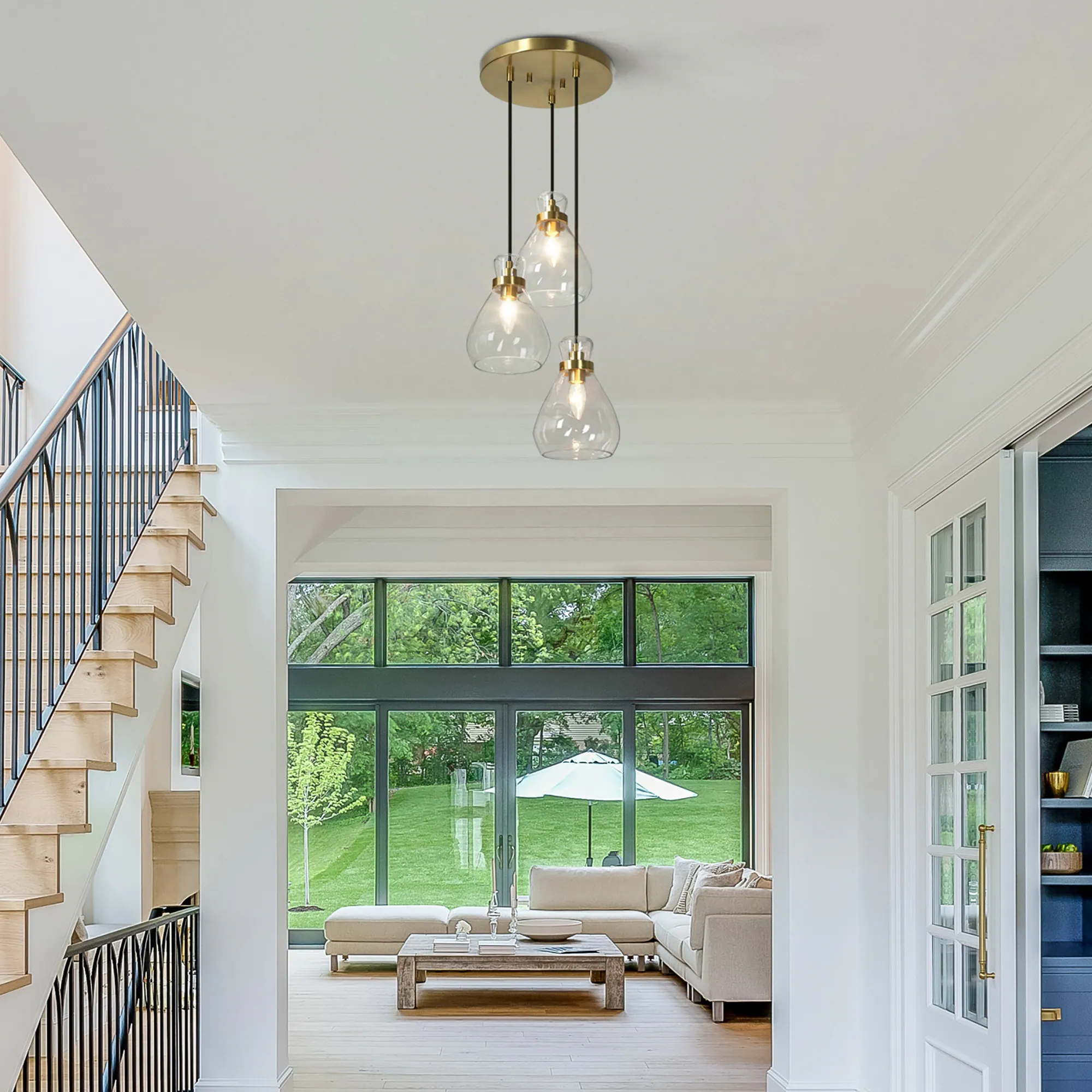 Malury Modern Large Cluster Pendant Chandelier Chic 3-Light Clear Drop Glass for Kitchen Island DIY