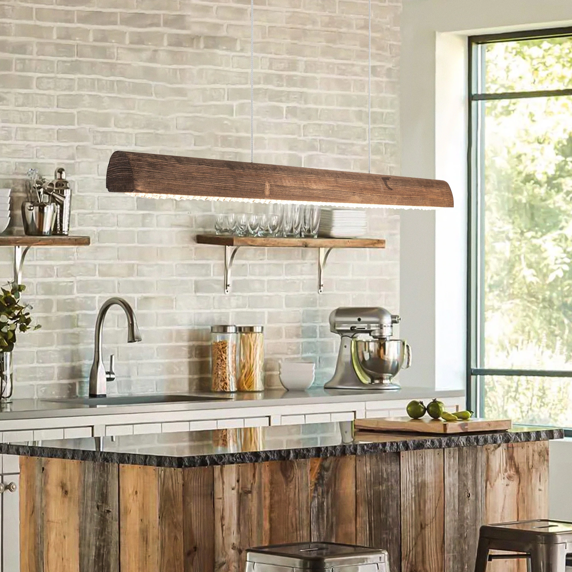 1-Light 41 in. Farmhouse Linear Chandelier Integrated LED Crystal Wood Kitchen Island Pendant