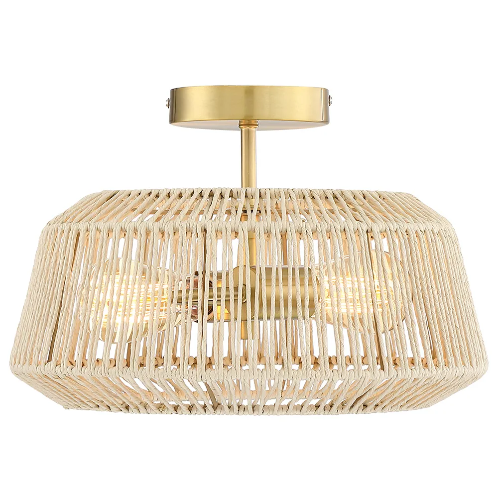 2-Light Rattan Semi-Flush Mount Ceiling Light