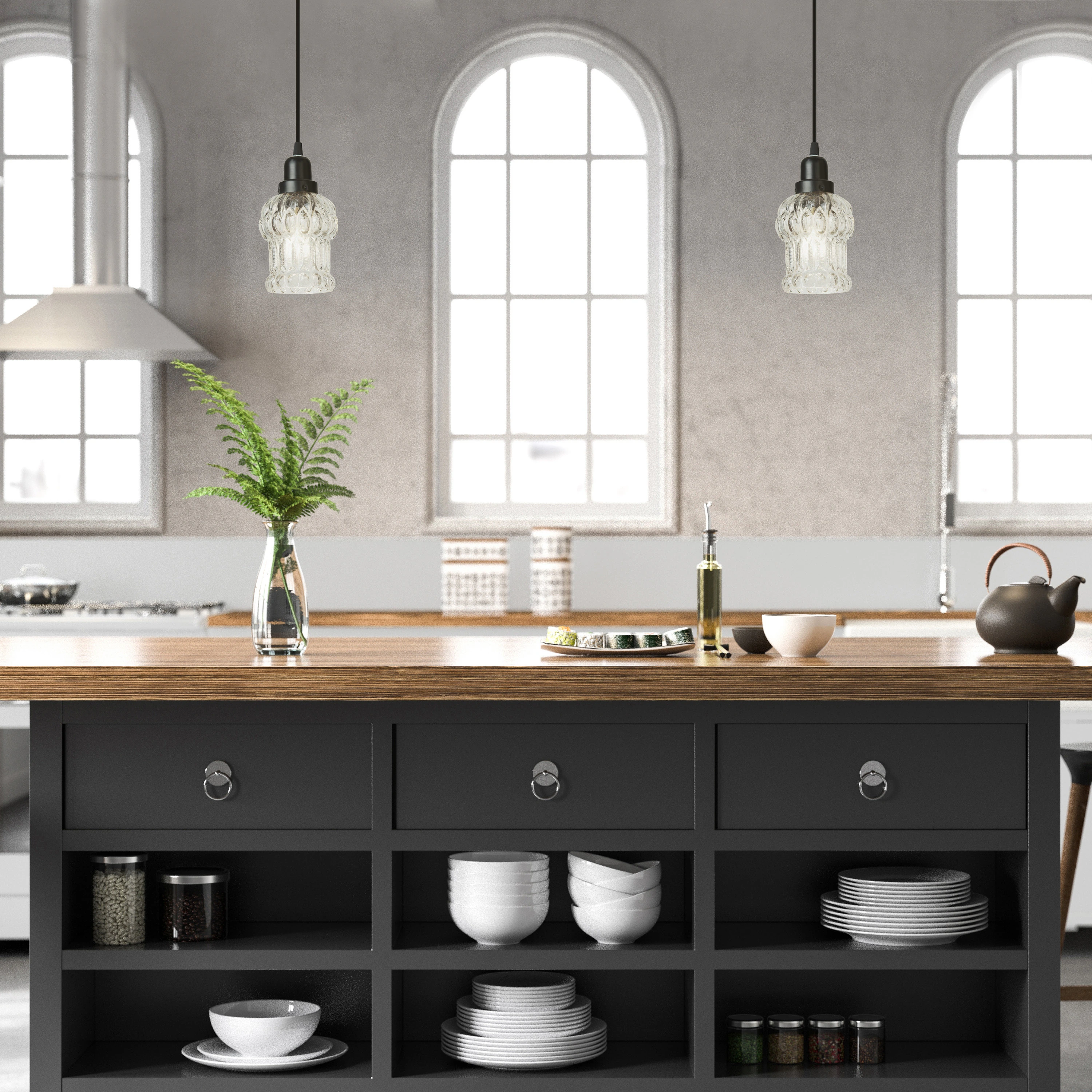 Baptiste River of Goods Clear and Black Glass and Metal 4.5-Inch Pendant Light with Adjustable Hanging Cord