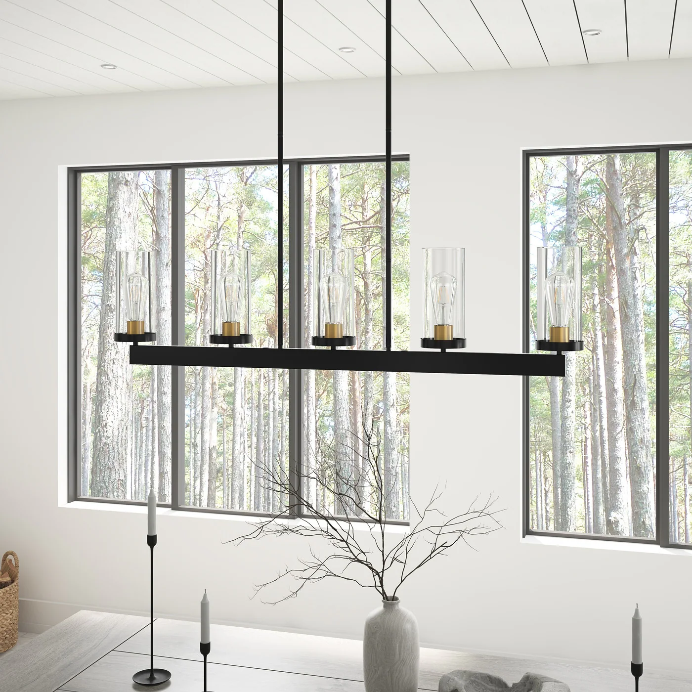 Modern Black 5-Light Clear Cylinder Glass Style Pendant for Kitchen Island