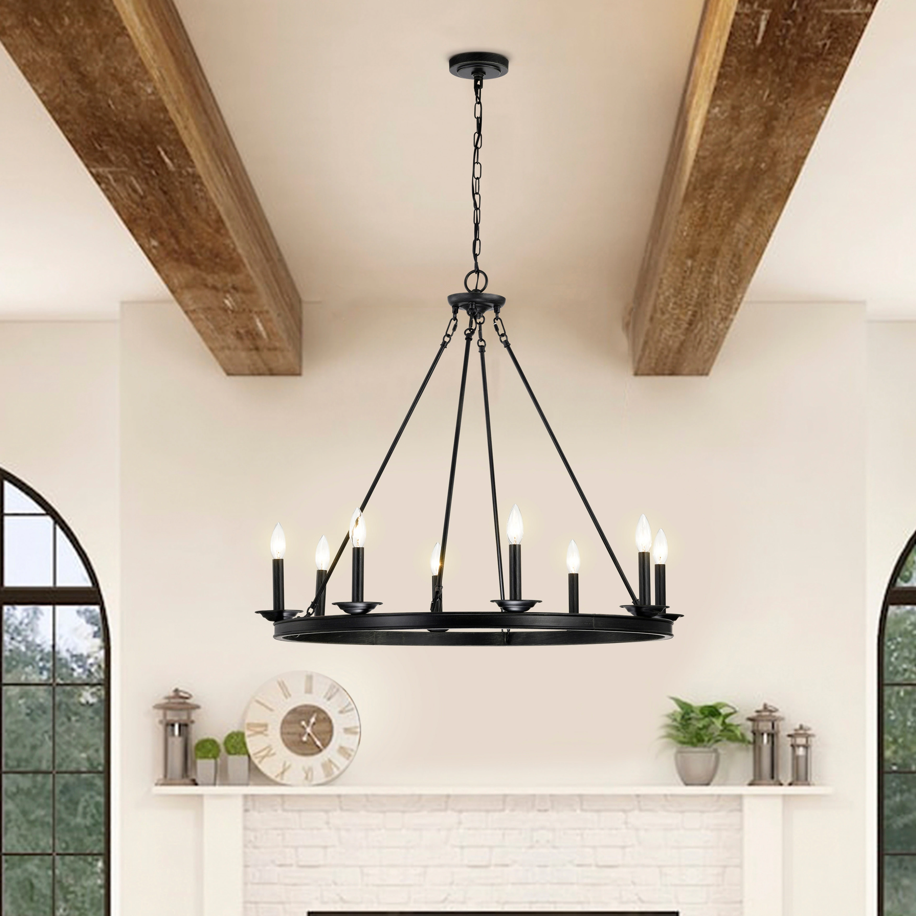 Viviana 8-Light Antique Black Finish Metal Round Chandelier