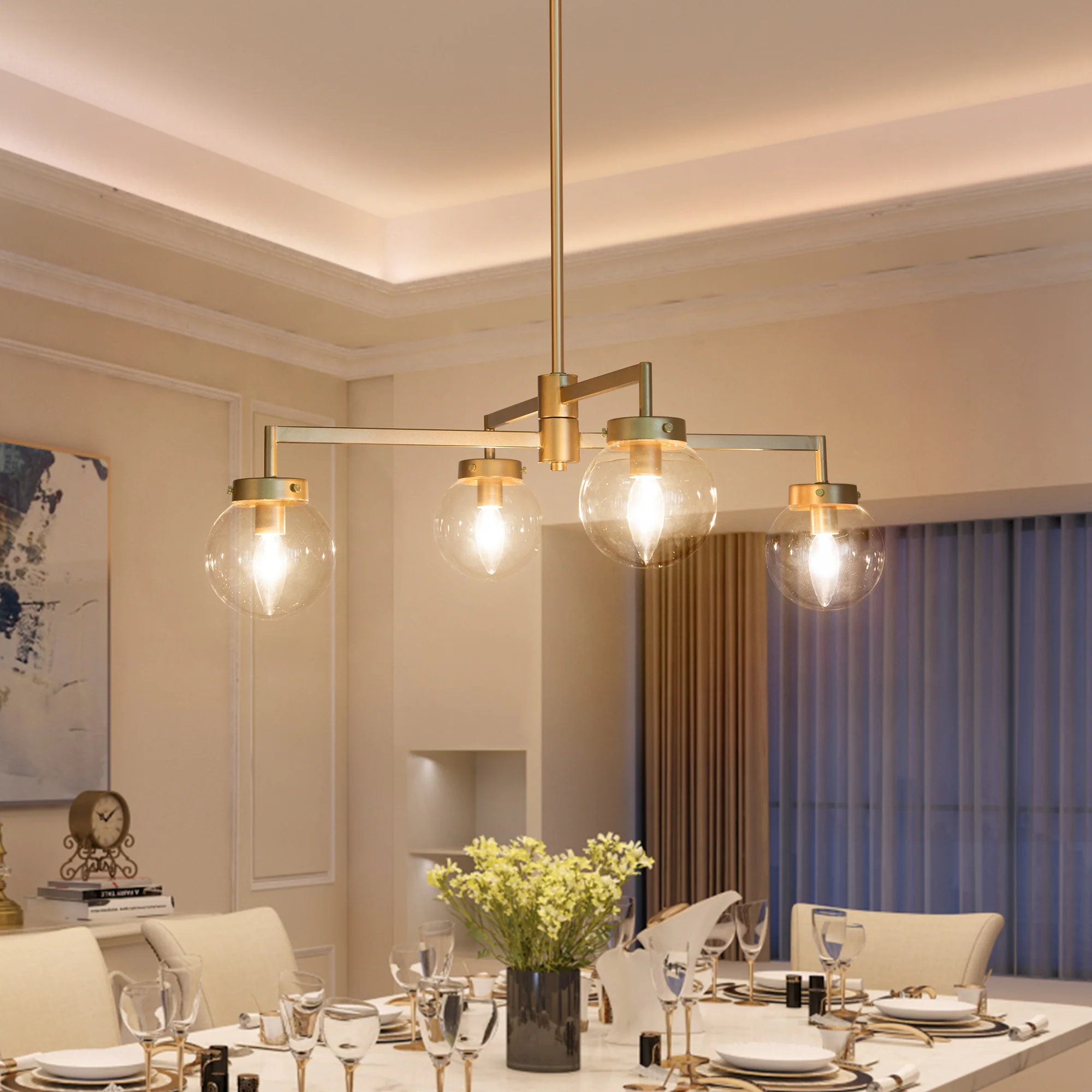 Modern Contemporary 4-light Sputnik Chandelier Adjustable Gold Ceiling Lights with Glass Globe