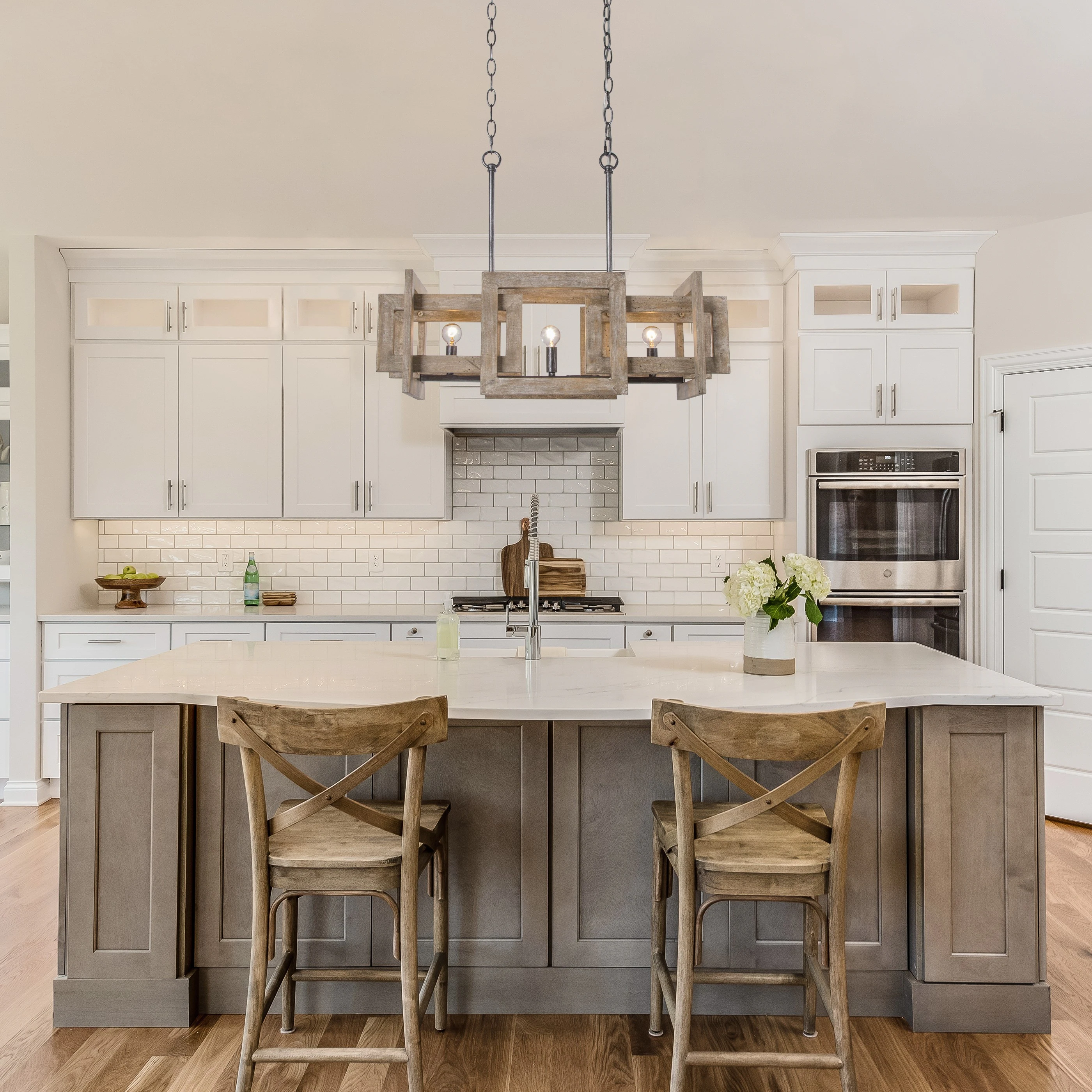 Loby Farmhouse 3-Light Antique Solid Wood Chandelier Rustic Linear Kitchen Island Pendant Light