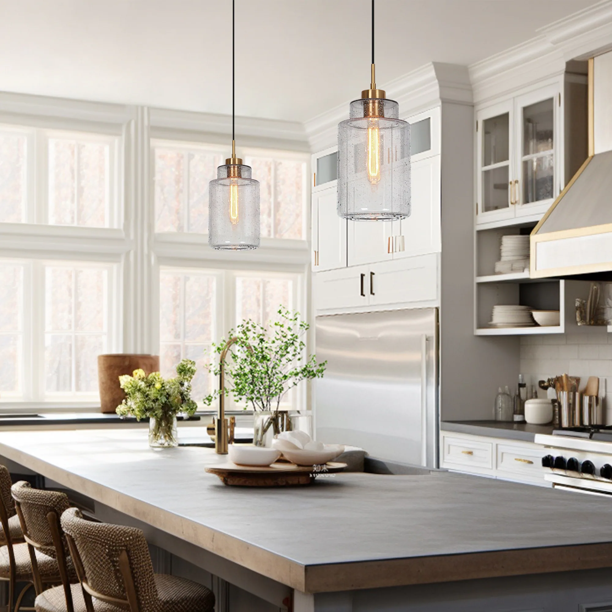Modern 1-Light Black Gold Large Grey Glass Island Pendant Light for Dining Room