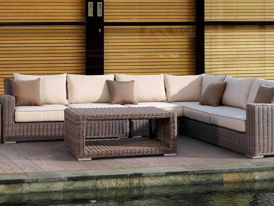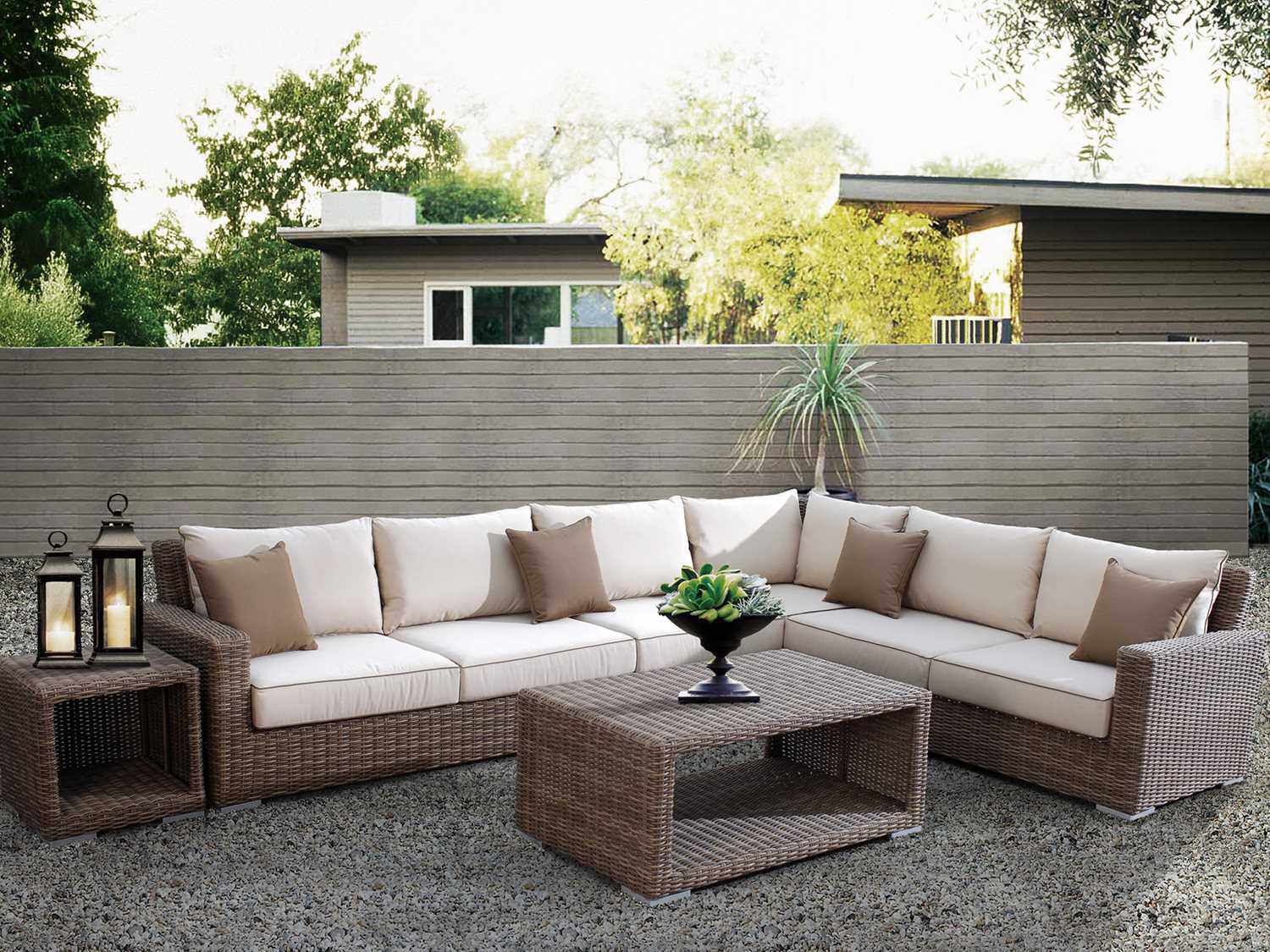 Coronado Wicker Driftwood Sectional Lounge Set in Canvas Flax with Self Welt