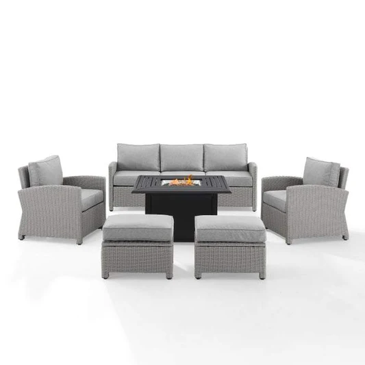 Crosley Furniture - Bradenton 6Pc Outdoor Wicker Sofa Set W/Fire Table Include Color - Dante Fire Table, Sofa, 2 Armchairs & 2 Ottomans - KO70183GY-XX - Gray